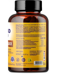 Aporta 1000 mg de aceite de espino amarillo por dosis diaria (2 cápsulas de 500 mg). Naturalmente rico en Omega 7 (ácido palmitoleico), junto con Omega 3, 6 y 9, para un perfil lipídico equilibrado y completo.