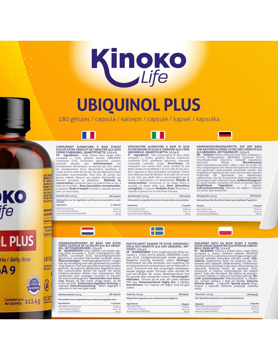 UBIQUINOL Plus 180 Cápsulas 200 mg Dosis Diaria Coenzima Q10 Reducida 100 mg por Cápsula con Omega 9 y Aceite de Oliva Virgen Extra Fermentación Natural