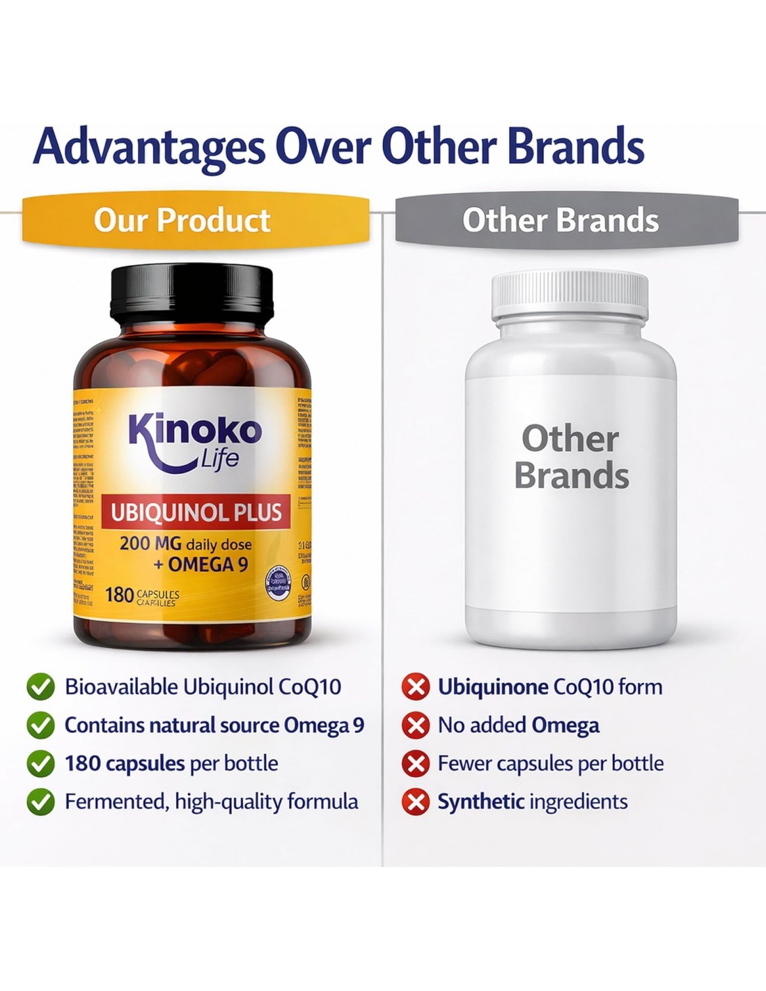 UBIQUINOL Plus 180 Cápsulas 200 mg Dosis Diaria Coenzima Q10 Reducida 100 mg por Cápsula con Omega 9  Fermentacion Natural