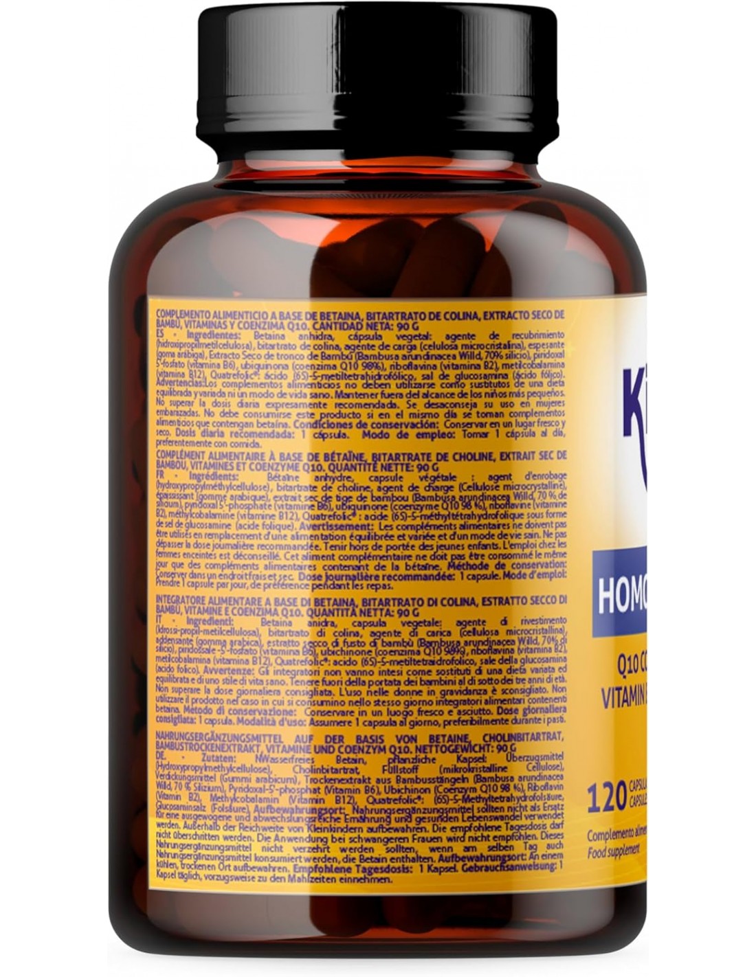 HOMOCYSCARE TMG Betaina (Trimetilglicina) 120 Cápsulas con Coenzima Q10 Acido Folico Activo Quatrefolic 5 MTHF Vitaminas B6 B12 Suministro 4 MESES Sin Gluten Non GMO